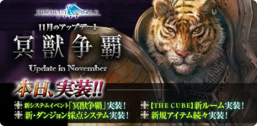 この度、オンラインゲームポータル「MK-STYLE」を運営する、株式会社シーアンドシーメディア(所在地:東京都中央区以下:C&Cメディア)は、C&Cメディアが日本国内において運営するオンラインRPG「パーフェクトワールド-完美世界-」(以下:パーフェクトワールド)につきまして、本日11月アップデート『冥獣争覇』を実施、また「Perfect World Prime Week」経験値、SP、Coin1.5倍イベントを実施しますことをお知らせ致します。